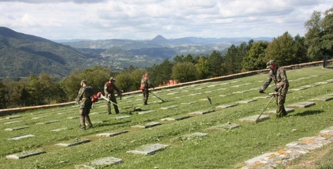 Erndtebrück. Soldaten des Einsatzführungsbereiches 2 aus Erndtebrück, Reservisten der Kreisgruppe Südwestfalen und ein aktiver Kamerad des Bundesamtes für das Personalmanagement der Bundeswehr in Siegburg führten im September 2022 (im „Monat des Kriegsgrabes“) einen Pflegeeinsatz auf dem Futa-Pass in der Toskana durch.